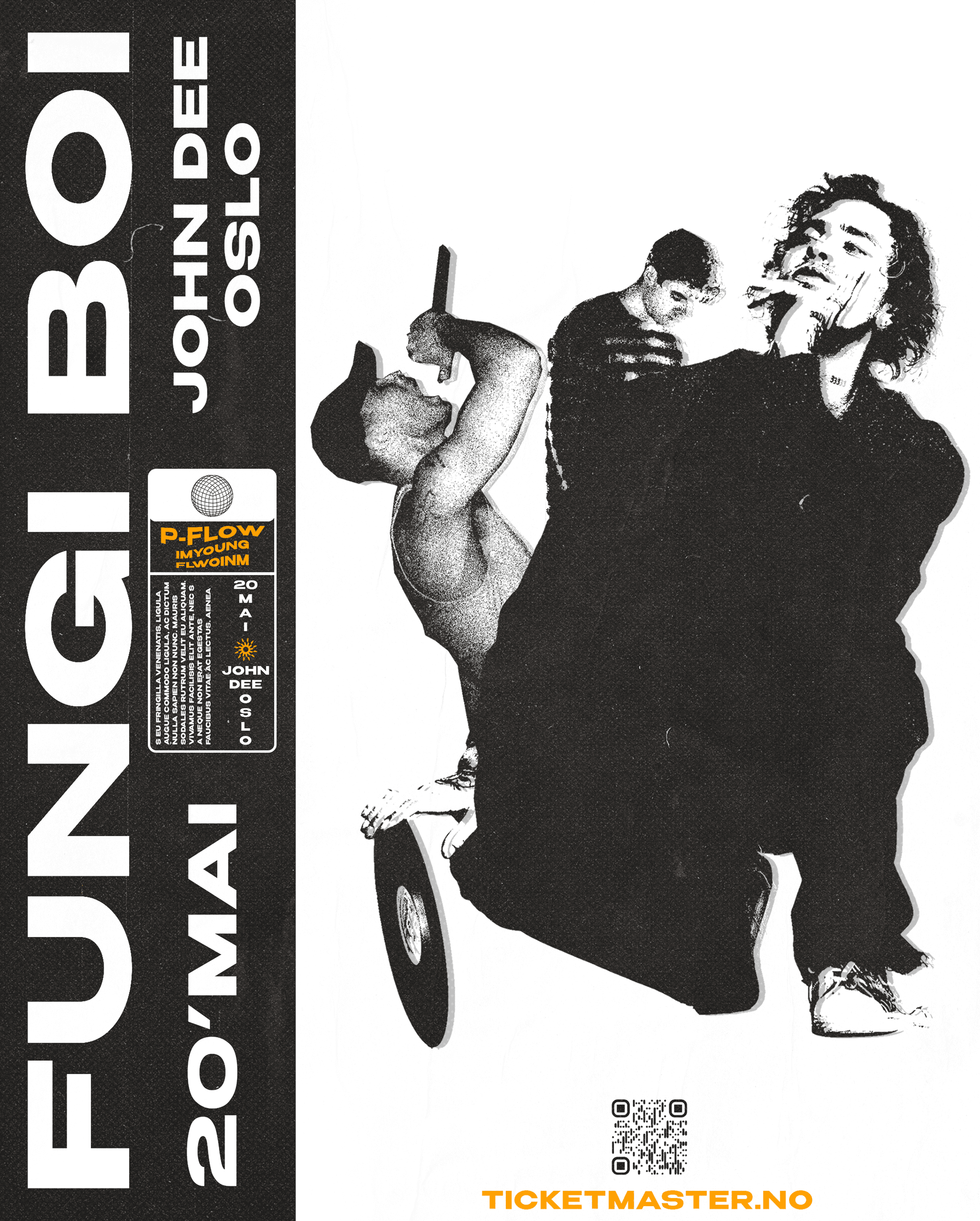 Designed bold and memorable visuals to promote P-Flow’s Fungi Boi concert, creating artwork that stood out across posters and social media while reflecting the album’s unique theme.